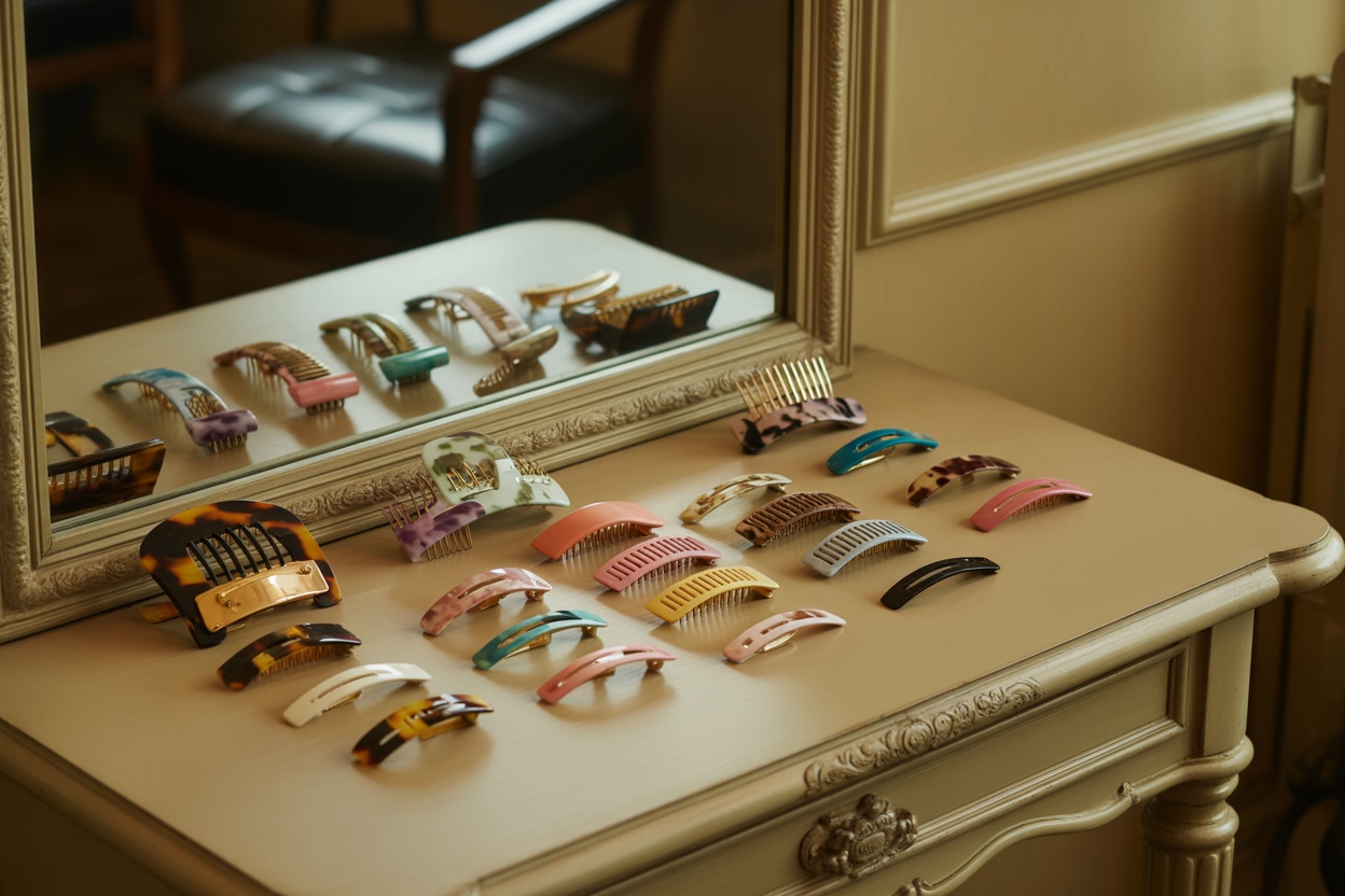 2025 consacre définitivement la barrette comme l'accessoire coiffure le plus polyvalent. Exit les modèles discrets d'antan : place aux créations XXL, aux formes géométriques audacieuses et aux finitions métallisées qui transforment la plus simple queue-de-cheval en statement capillaire.