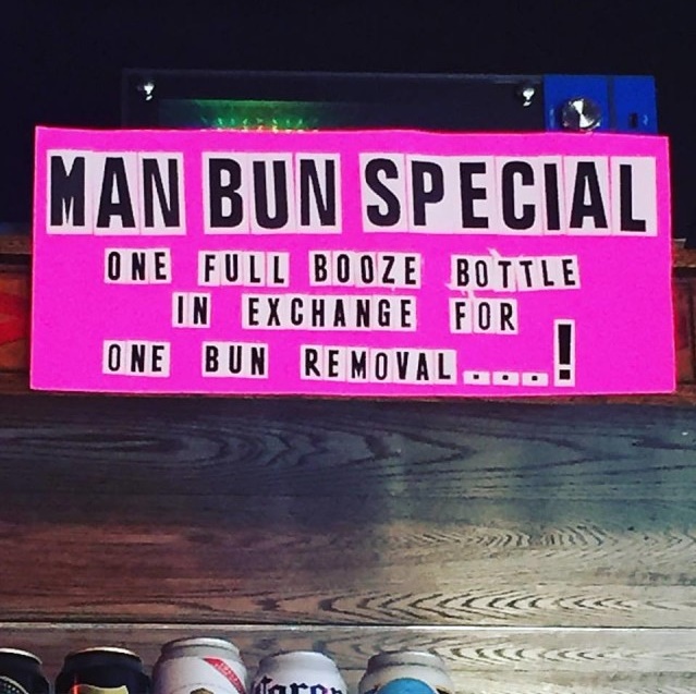 "Boobie Trap" est un bar situé dans un quartier de Brooklyn qui semble ne pas apprécier du tout la coiffure masculine dite "man bun" en vogue depuis quelques temps maintenant, à tel point que le Boobie Trap a décidé de faire une offre insolite.