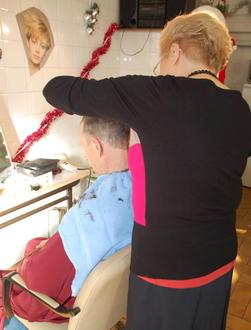 Un coiffeuse bénévole vient coiffer une fois par semaine les bénéficiaires pour leur permettre d'oublier, le temps d'une coupe de cheveux, la difficulté du quotidien.