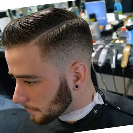 Il s'agit d'une coupe de cheveux rasée très court sur les côtés en laissant une masse de cheveux plus ou moins importante sur le dessus de la tête, et en leur donnant un mouvement accentué par une raie sur le côté.