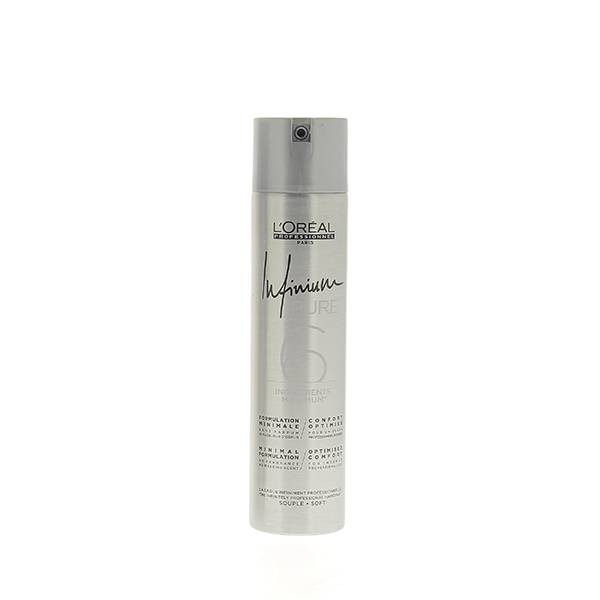 Laque Infinium Pure souple sans parfum - 300ml:Elle offre un toucher naturel et sublime la chevelure en laissant une brillance ultime. Cette laque offre une tenue souple aux cheveux, sans souci de dépôts blancs, un confort d'utilisation garanti et une fixation immédiate sans effet carton.Sans parfumSans masqueur d'odeurHypoallergénique6 ingrédients maximum au lieu de 15 sur une laque normale