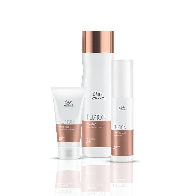 Les soins de la gamme intense Fusion réparent et protègent les cheveux secs et abîmés grâce à la fusion de principes actifs et de technologie puissante.Le shampoing intense Fusion de 500ml répare intensément les cheveux secs et abîmés. Grâce à la fusion de la technologie EEDS, des lipides micronisés et des acides aminés, les cheveux deviennent jusqu'à 95% plus résistants à la casse*. Il protège les cheveux contre les agressions extérieures et répare intensément la fibre capillaire. *par rapport à un shampooing traditionnel.Le masque intense Fusion protège instantanément les cheveux contre les cassures dues au brossage et à l'utilisation d'appareils chauffants. Il démêle et rend les cheveux doux au toucher.Le soin réparation intense Fusion pénètre dans le cortex pour recharger le cheveu de l'intérieur. Application ciblée sur les parties sensibilisées (longueurs et pointes).